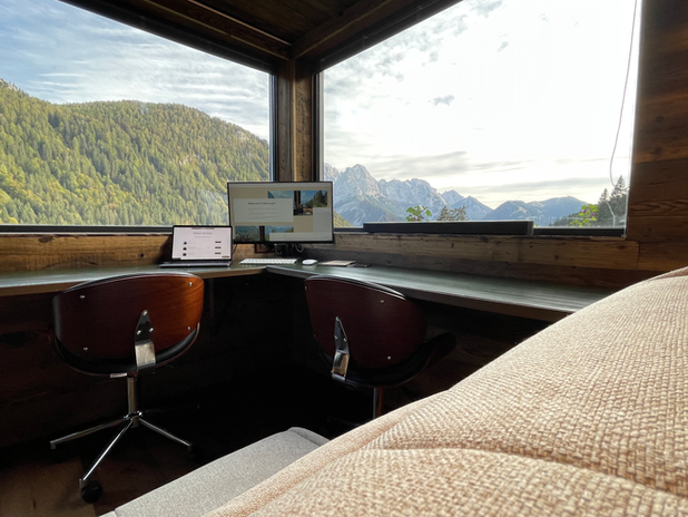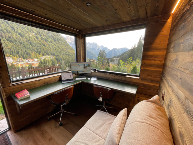 Refyouge è anche un luogo di smart working a Madonna di Campiglio, di appuntamenti online anche quando sei in vacanza, è il tuo ufficio quando devi e quando vuoi.